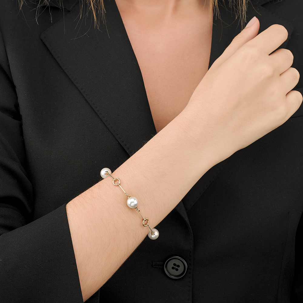 Золотой браслет женский с жемчугом Majorica Timeless