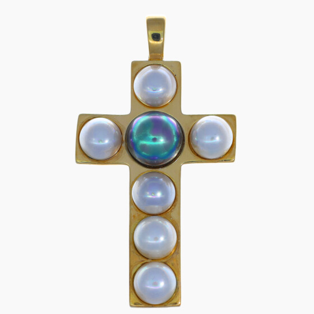 Особенности Золотой крест с органическим жемчугом Majorica Cruces
