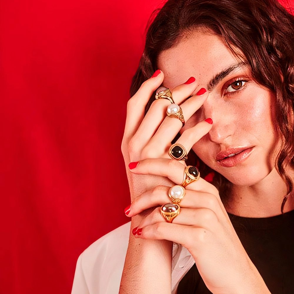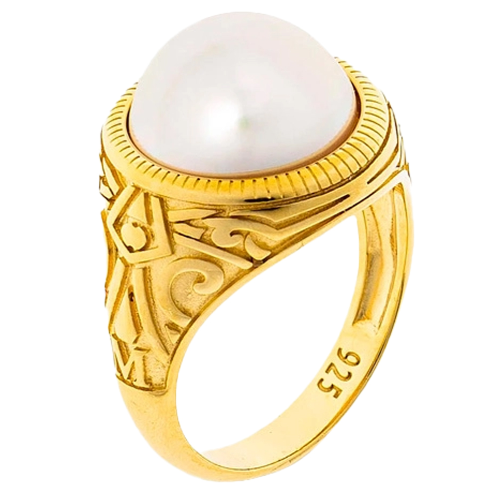 Особенности Золотое кольцо женское с жемчугом Majorica Etna