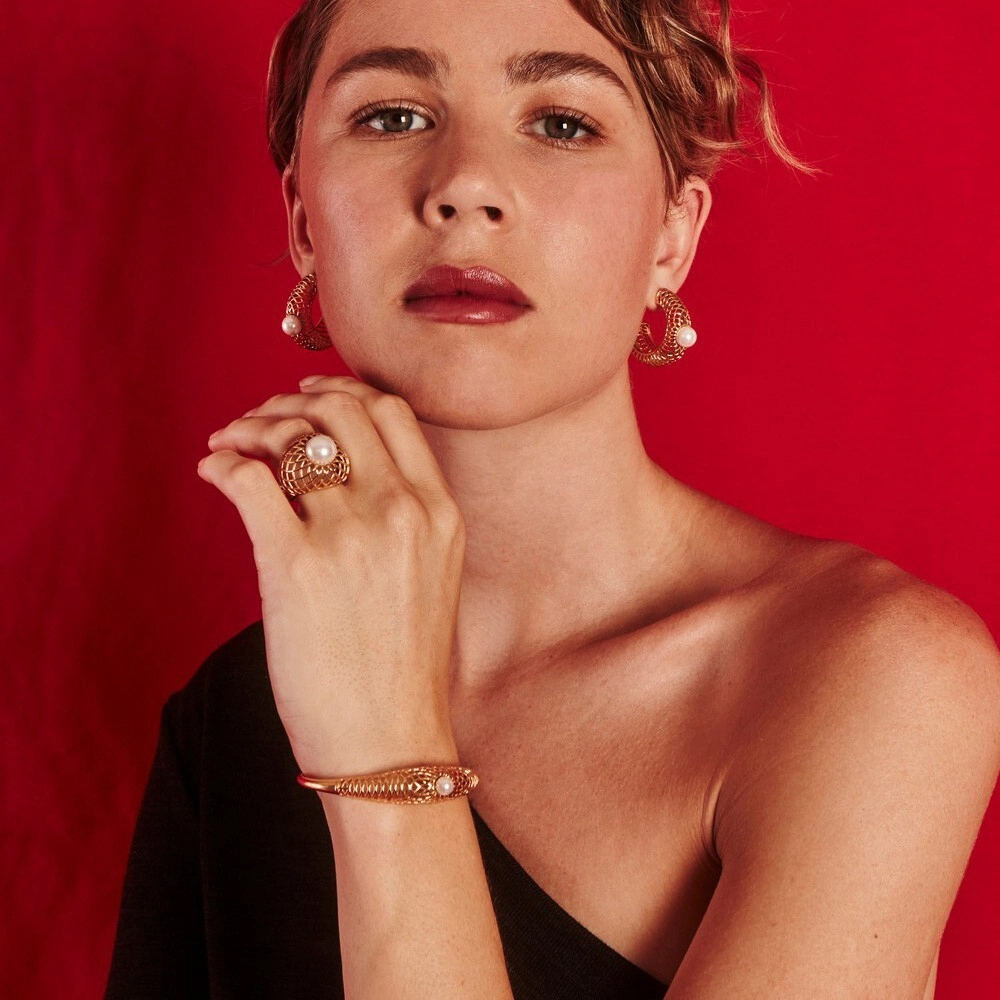Описание Золотой браслет с жемчугом Majorica Etna