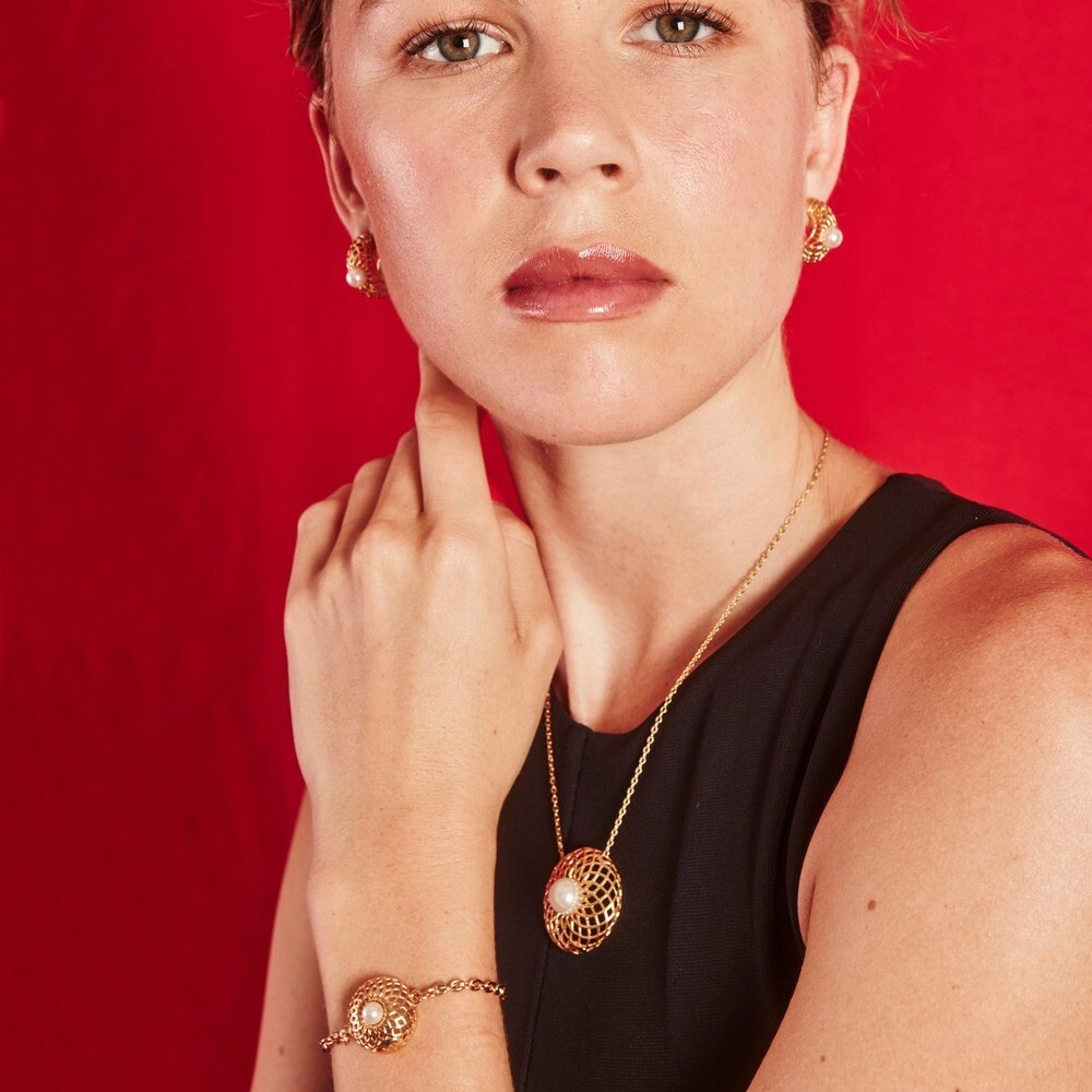 Описание Золотой браслет с жемчугом Majorica Etna