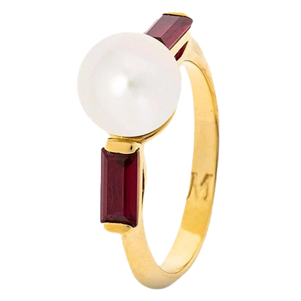 Золотое кольцо с жемчугом и кубическим цирконием Majorica Selene