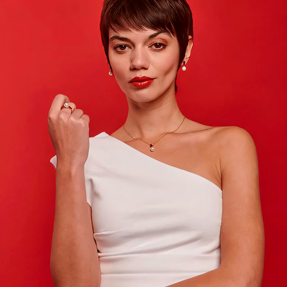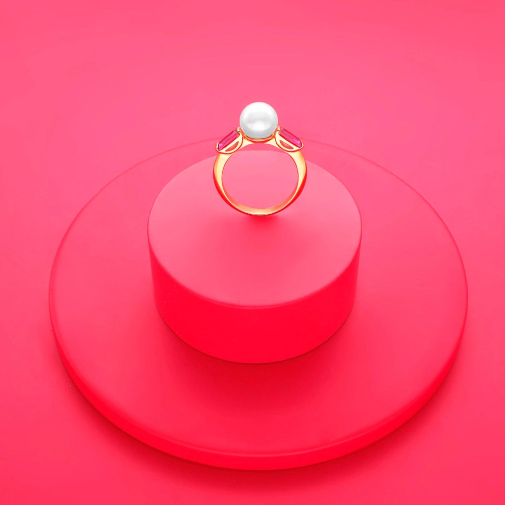 Особенности Золотое кольцо с жемчугом и кубическим цирконием Majorica Selene