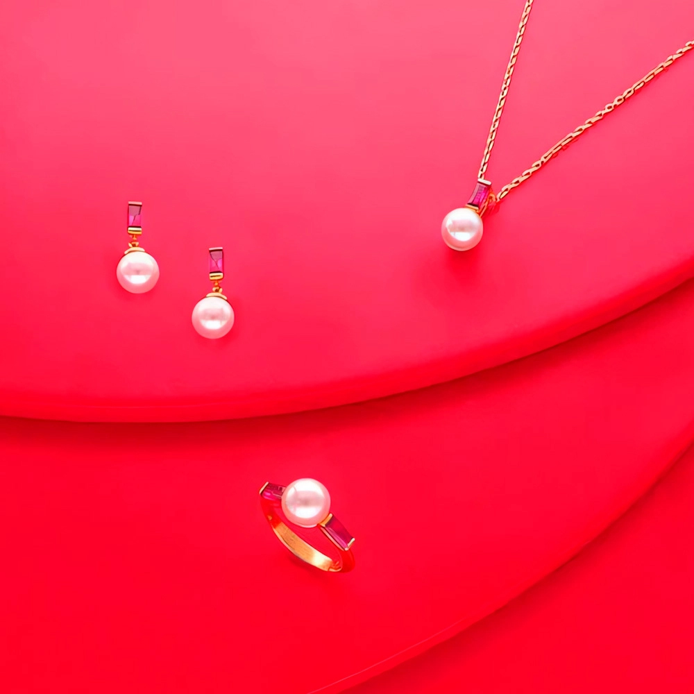 Описание Золотое кольцо с жемчугом и кубическим цирконием Majorica Selene