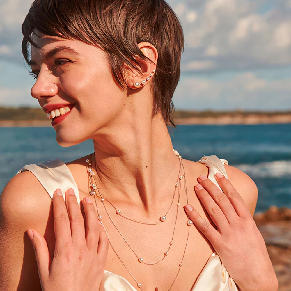 Описание Серебряные серьги каффы с жемчугом Majorica Dangle