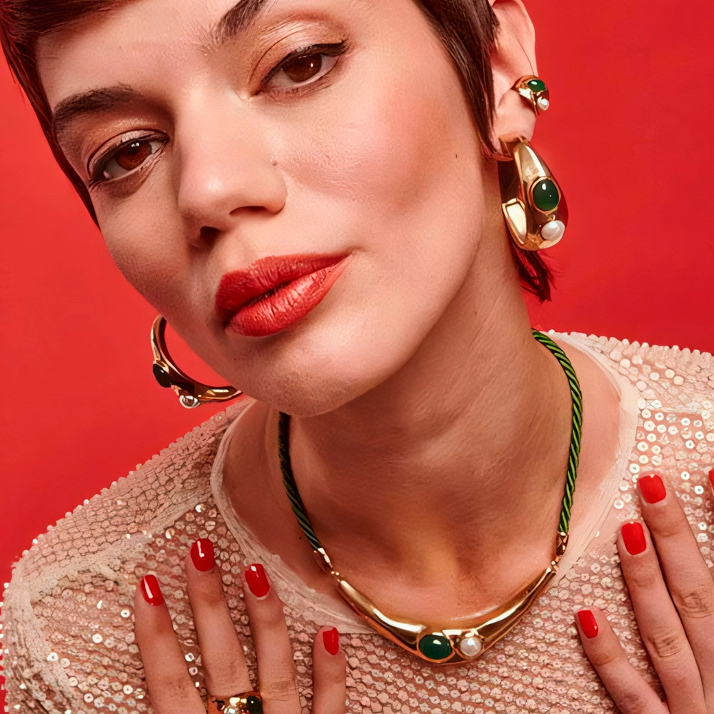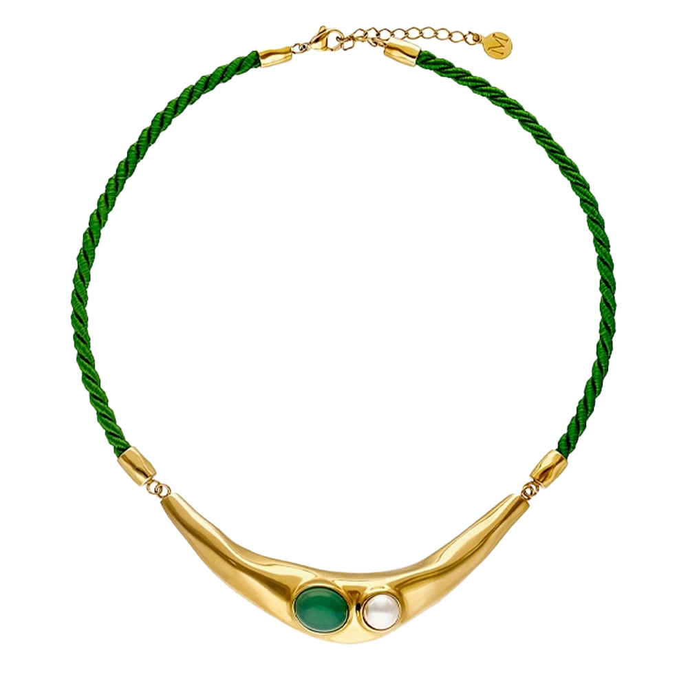 Описание Золотое колье с жемчугом и агатом Majorica Feme