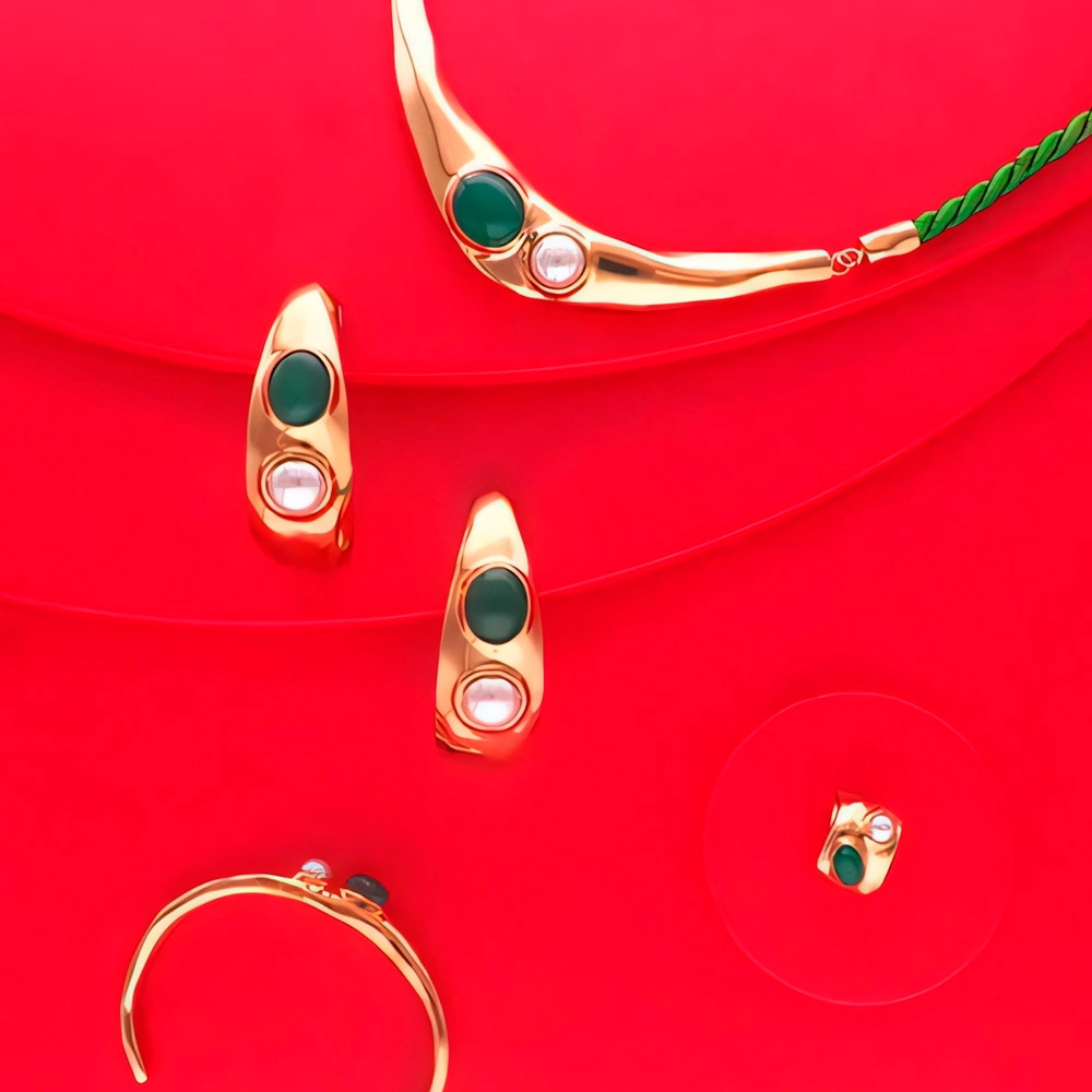 Особенности Золотое колье с жемчугом и агатом Majorica Feme