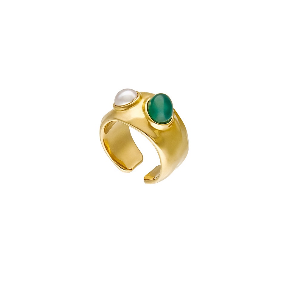 Особенности Золотое кольцо женское с жемчугом и агатом Majorica Feme