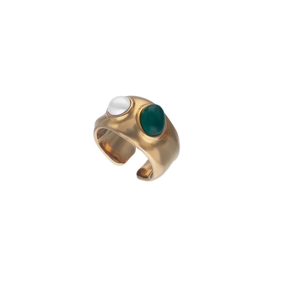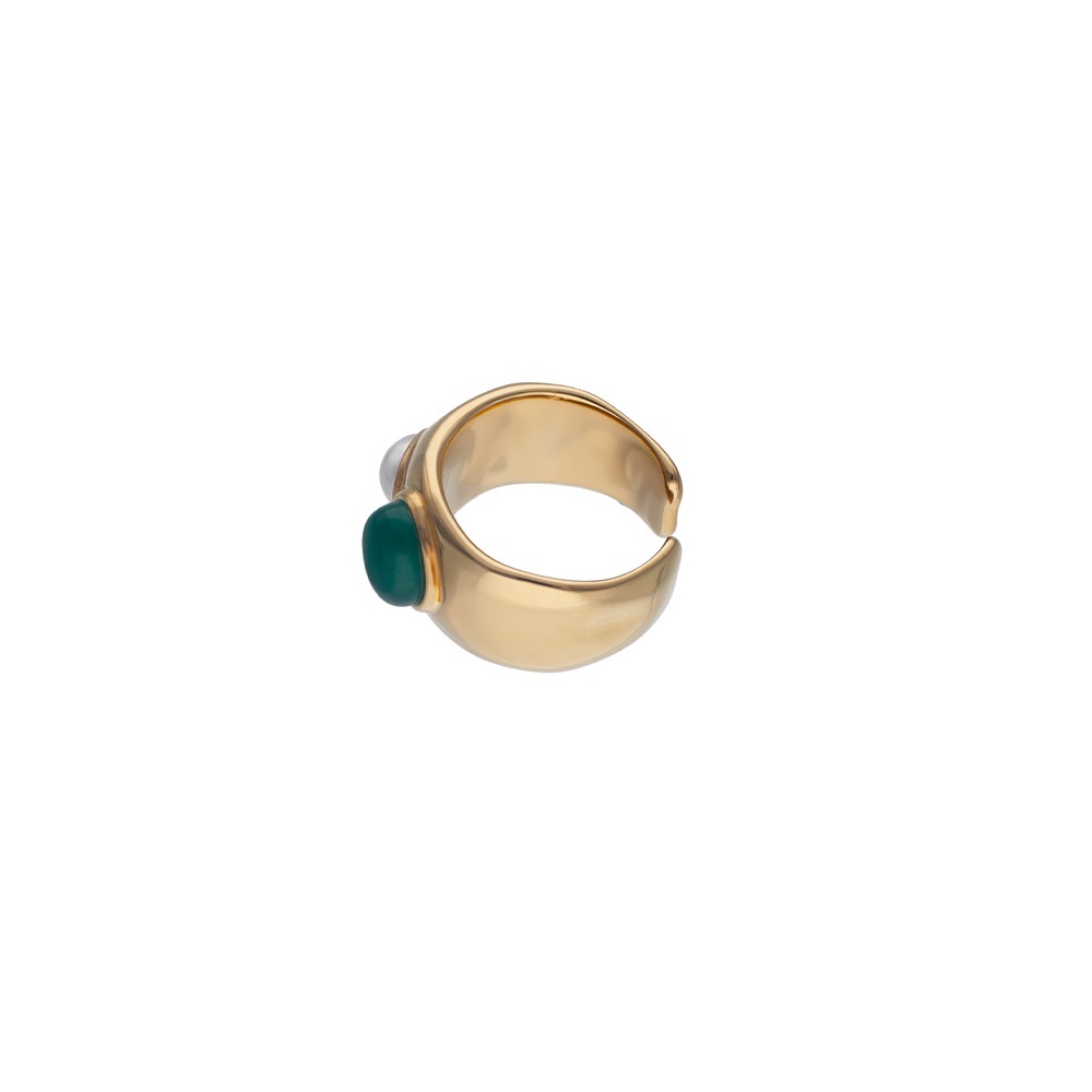 Описание Золотое кольцо женское с жемчугом и агатом Majorica Feme