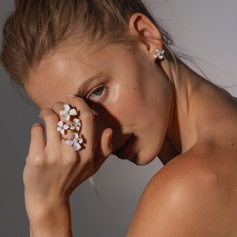 Золотые серьги женские с жемчугом Majorica Flowers