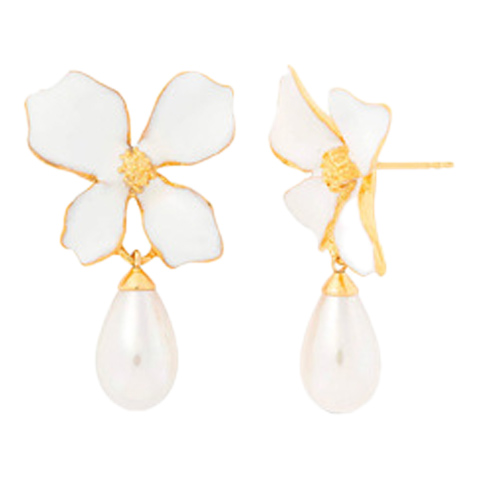 Золотые серьги женские с жемчугом Majorica Flowers