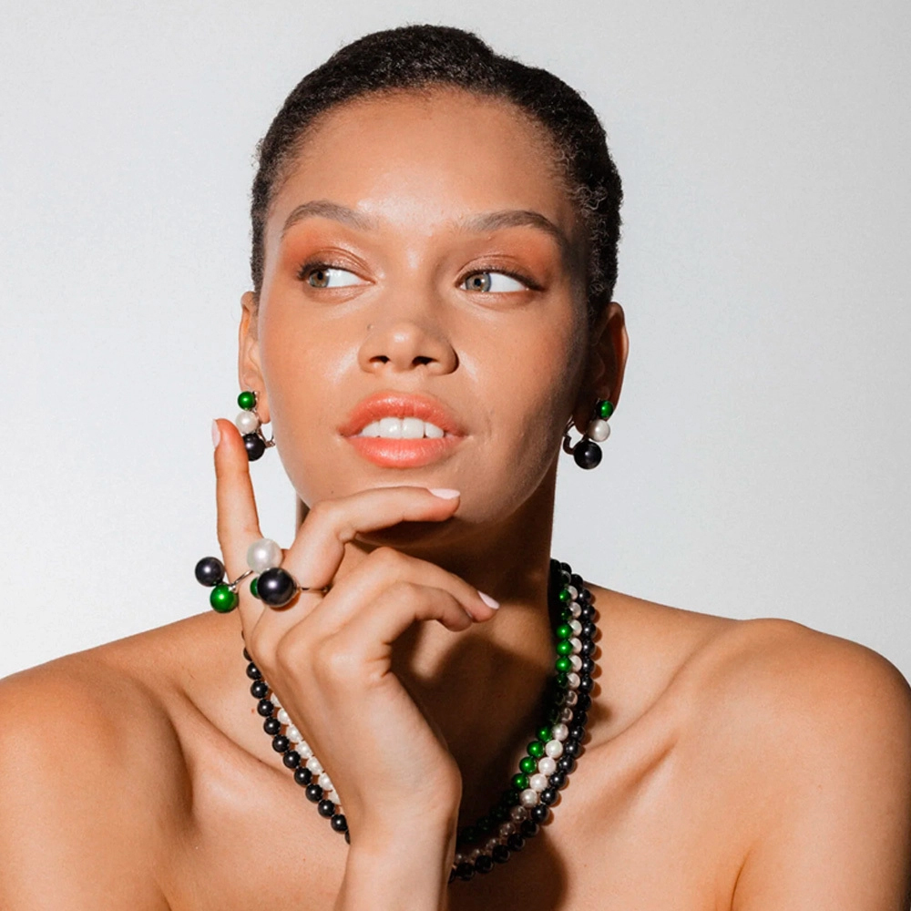 Особенности Серебряное кольцо женское с жемчугом Majorica Twins & triplets