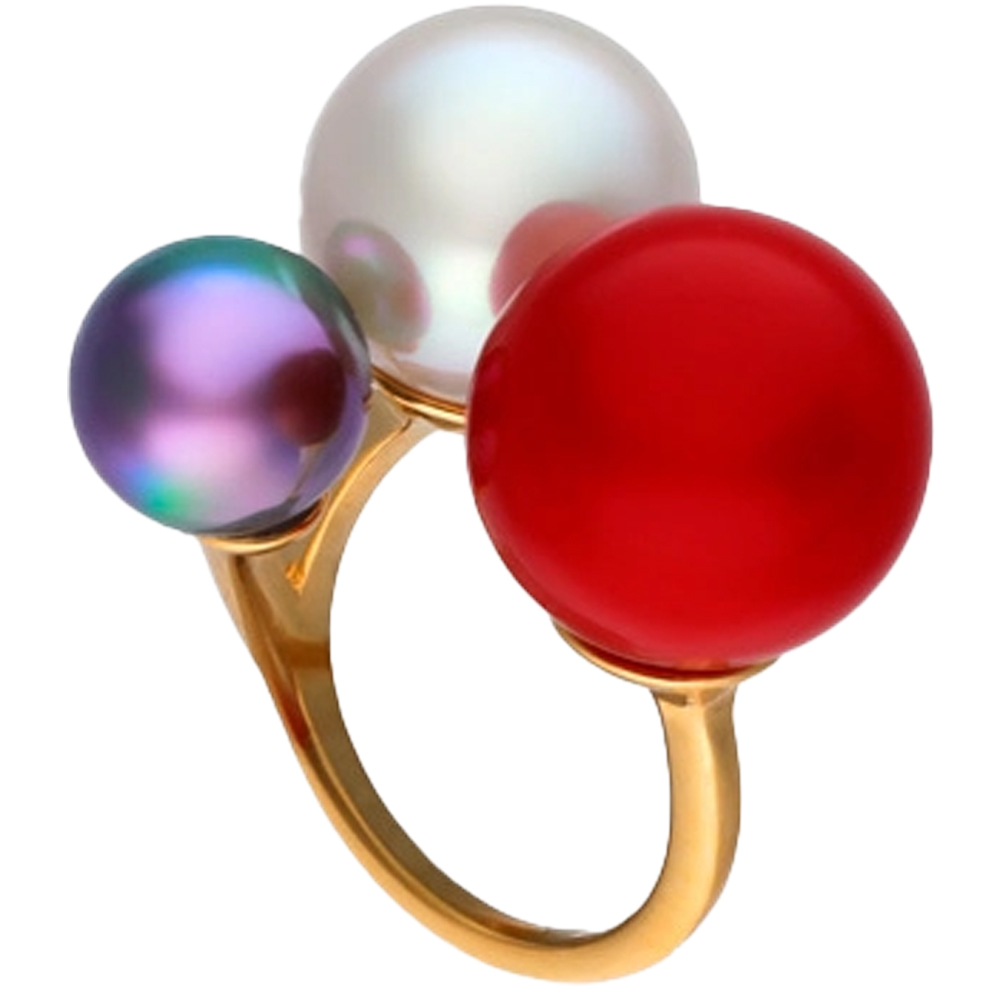 Описание Золотое кольцо женское с жемчугом Majorica Twins & triplets