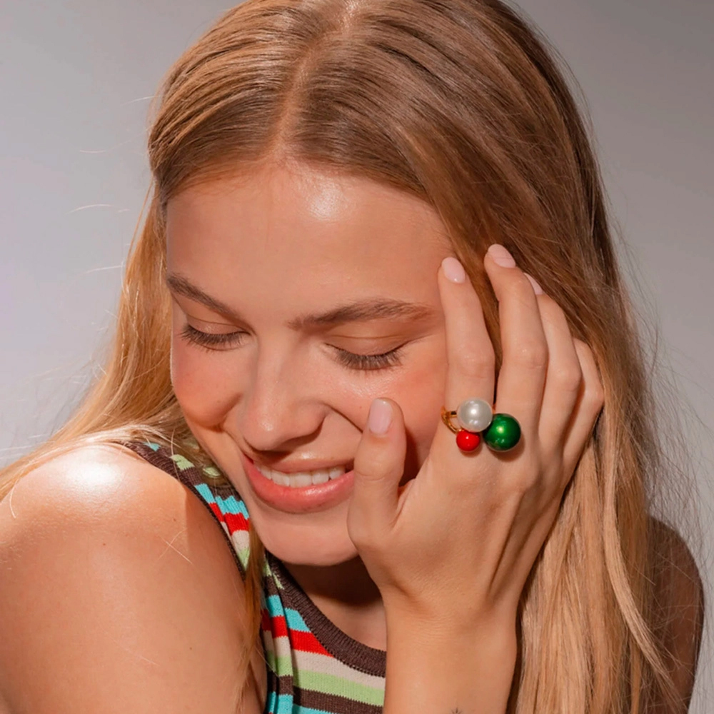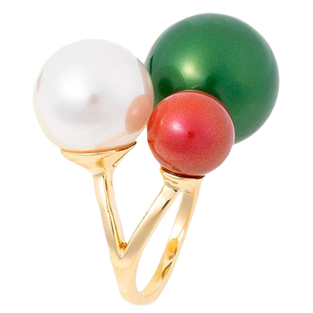 Золотое кольцо женское с жемчугом Majorica Twins & triplets