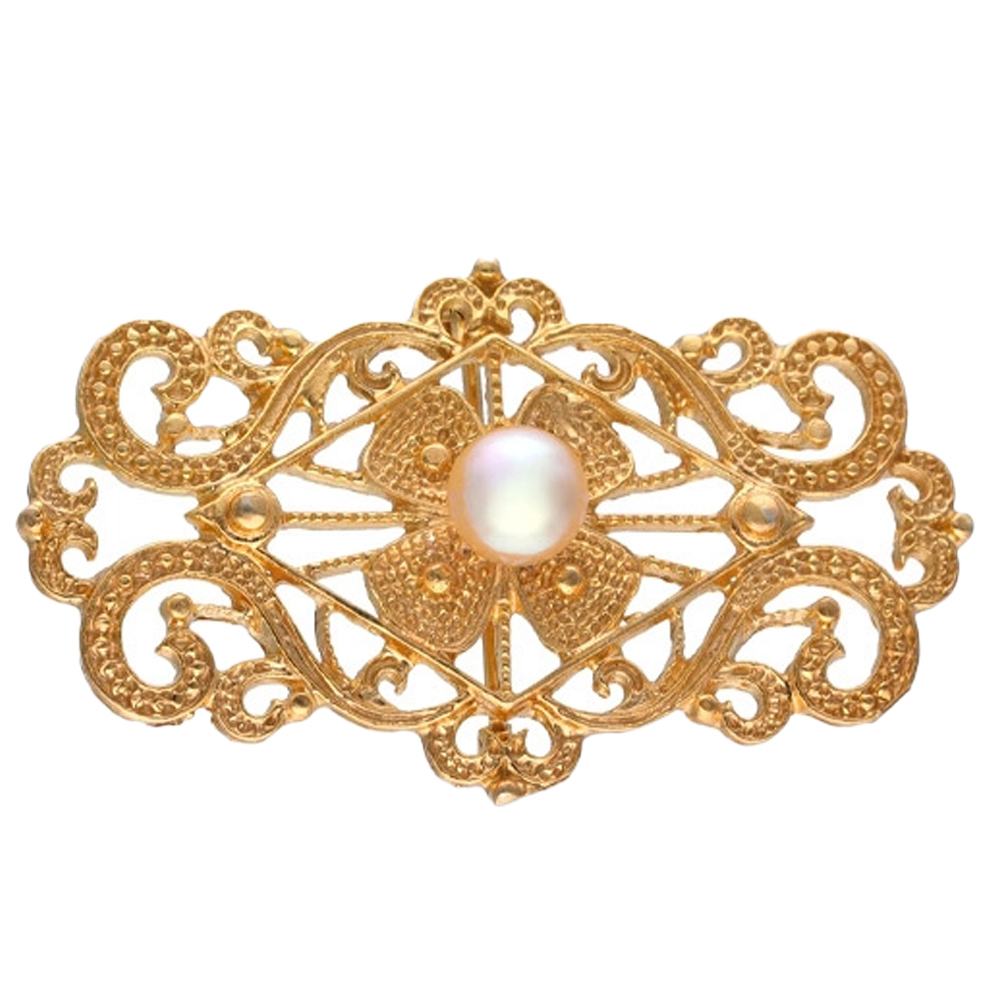 Золотая брошь с жемчугом Majorica Marie Antoinette