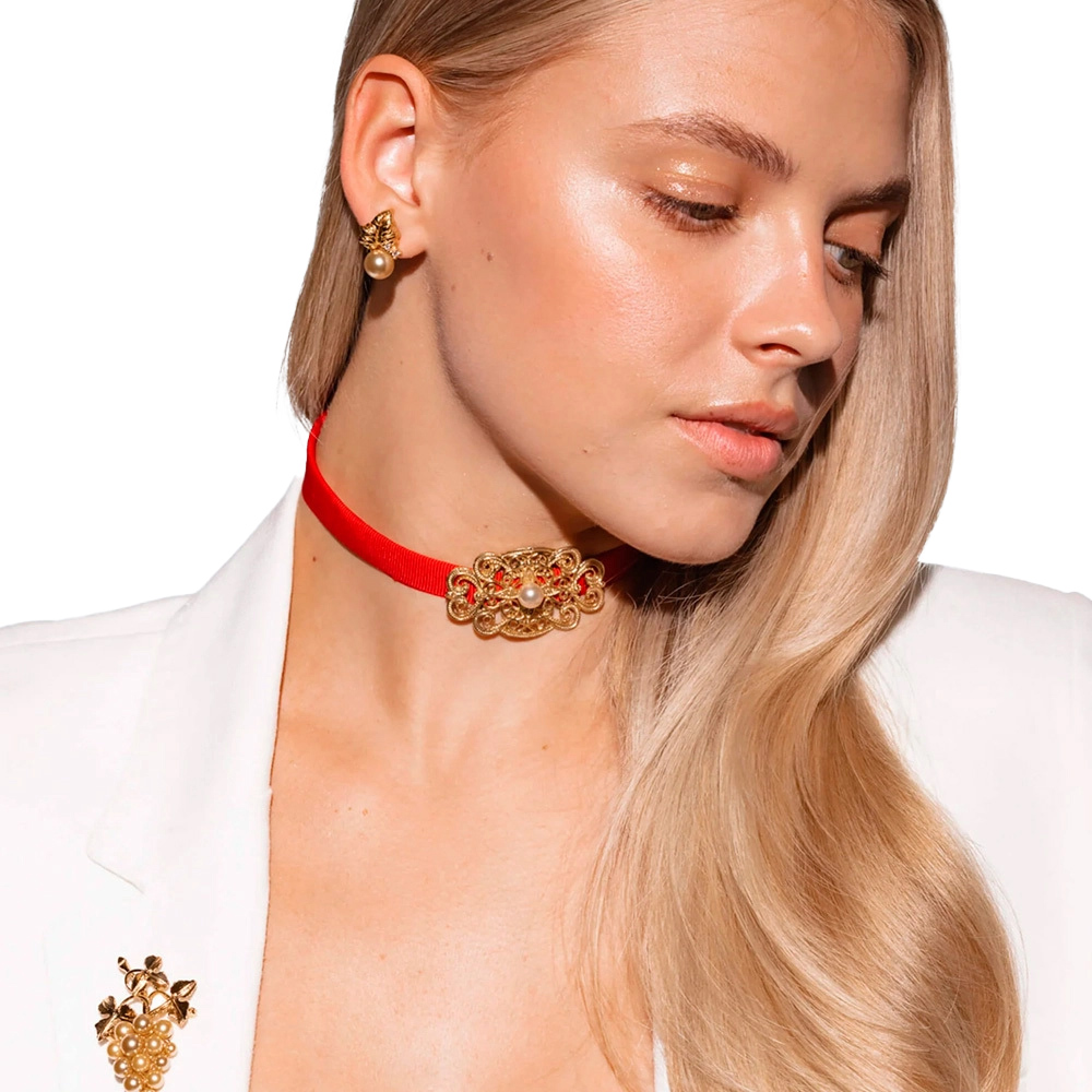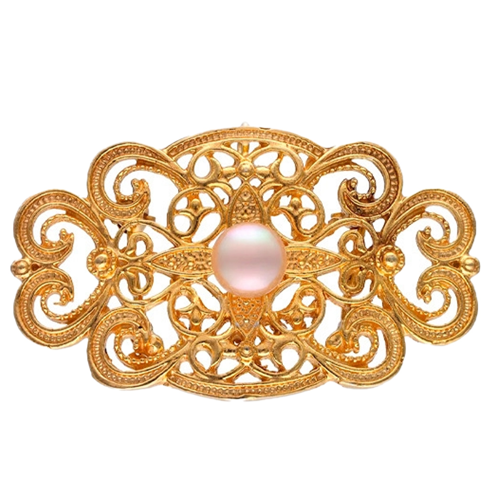 Золотая брошь с жемчугом Majorica Marie Antoinette