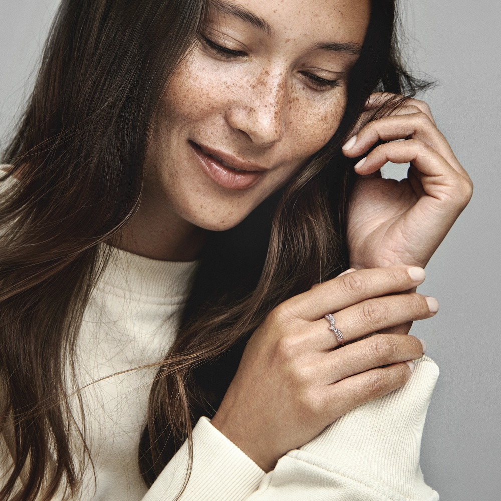 Описание Женское кольцо с золотом и цирконием Сверкающие листья Pandora Moments