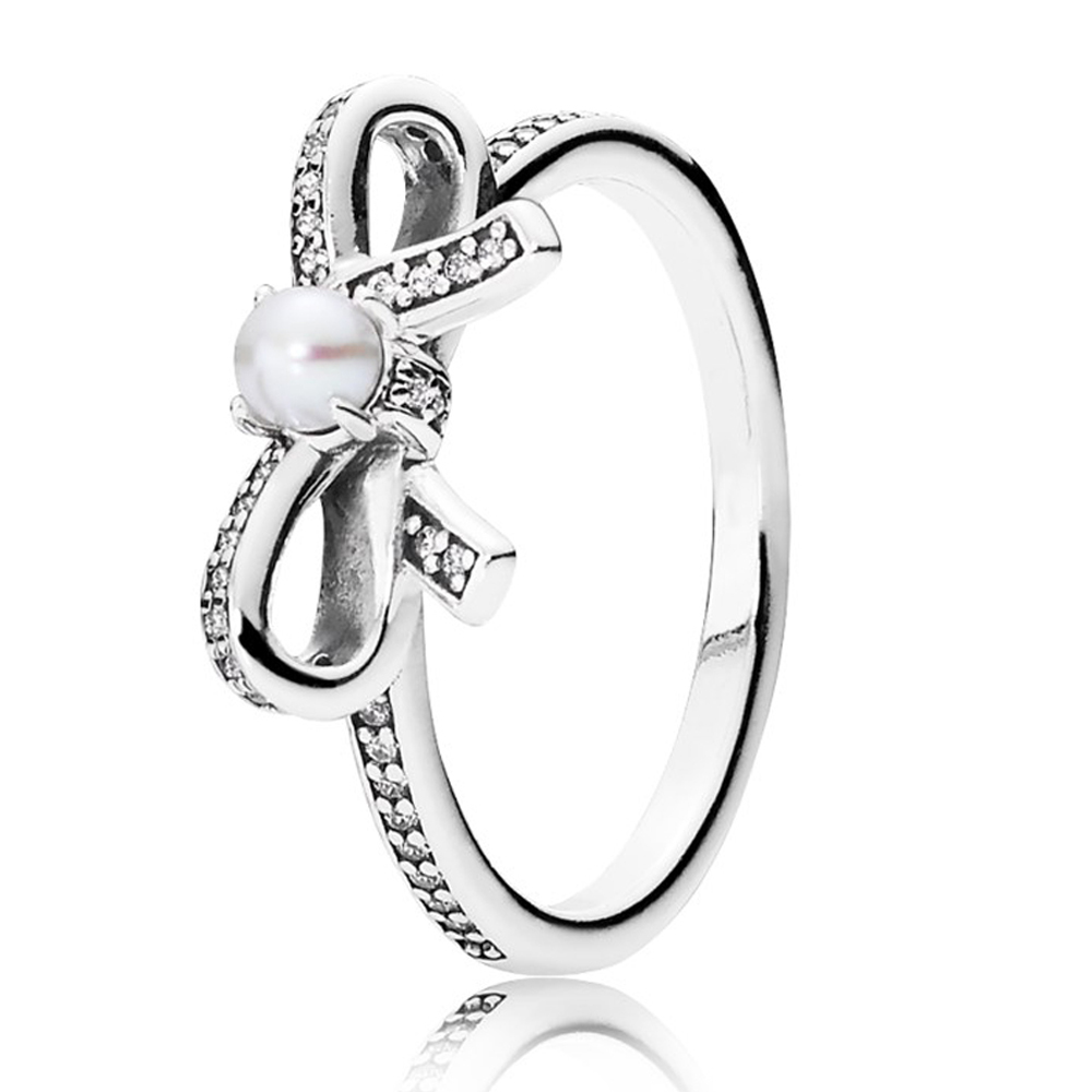 Особенности Серебряное кольцо с жемчугом и кристаллами Нежное отношение Pandora