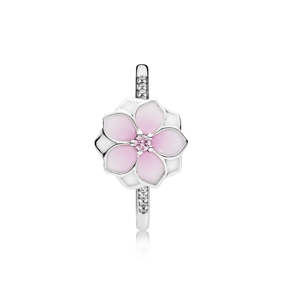 Серебряное кольцо женское с кристаллами Магнолия Pandora