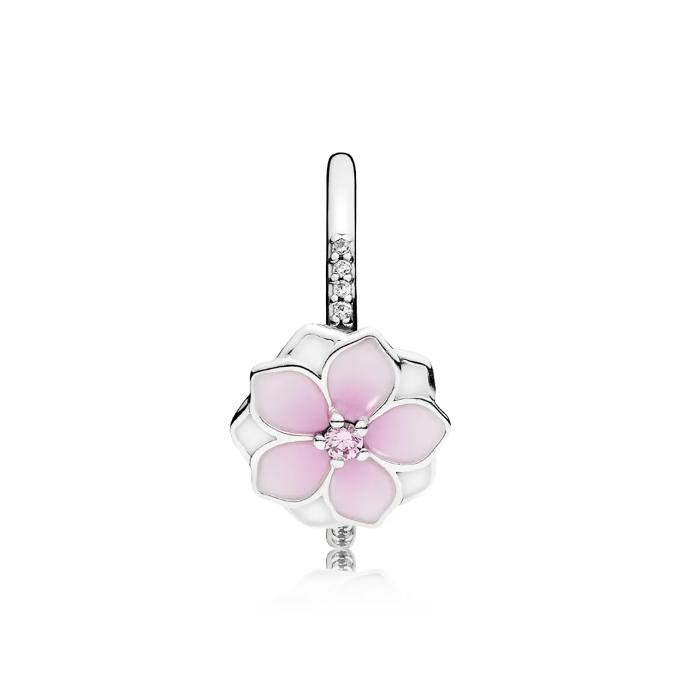 Сочетайте свой маникюр с цветами на этом кольце из стерлингового серебра ручной работы. Цветок магнолии украшен розовой и белой эмалью.