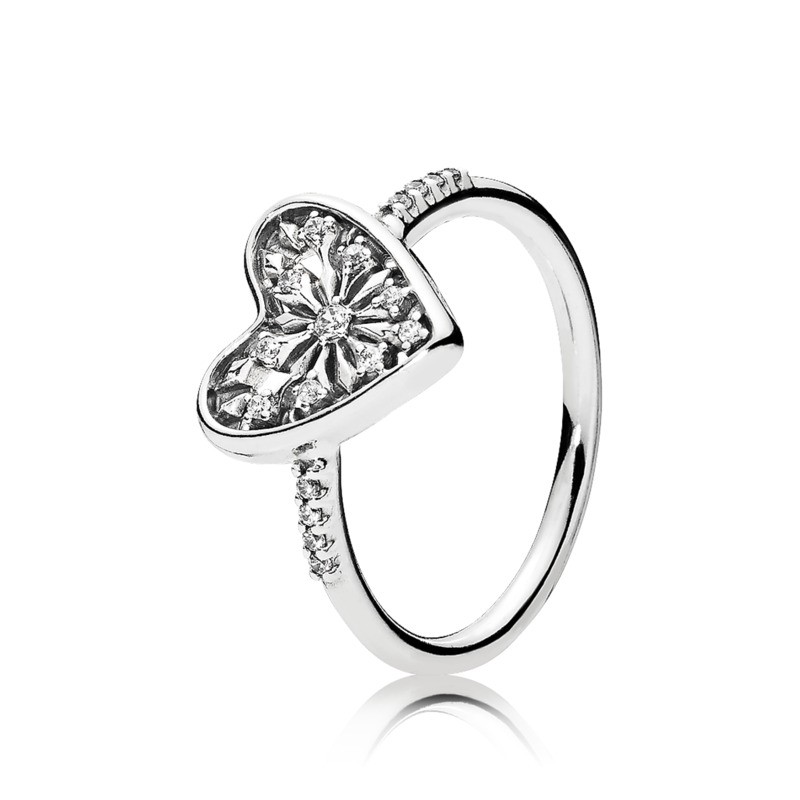 Серебряное кольцо женское с цирконием Хрустальное сердце Pandora Moments