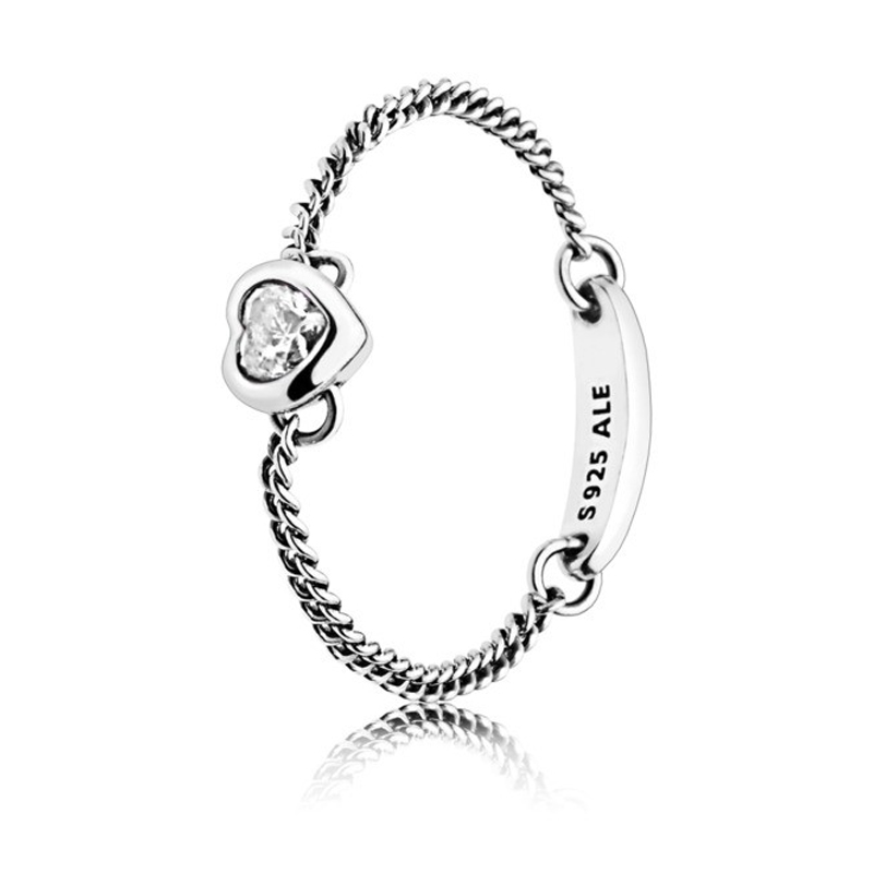 Классика в современной интерпретации - минималистичное кольцо из серебра, шинка которого выполнена в виде цепочки. Дизайн кольца дополнен миниатюрным кристаллом кубического циркония огранки "Сердце".