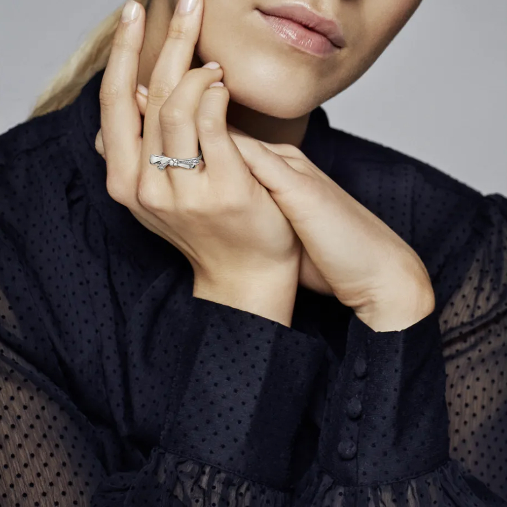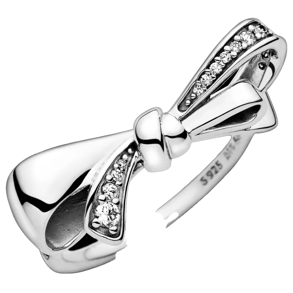 Особенности Серебряное кольцо с кристаллами Сверкающий Бант Pandora