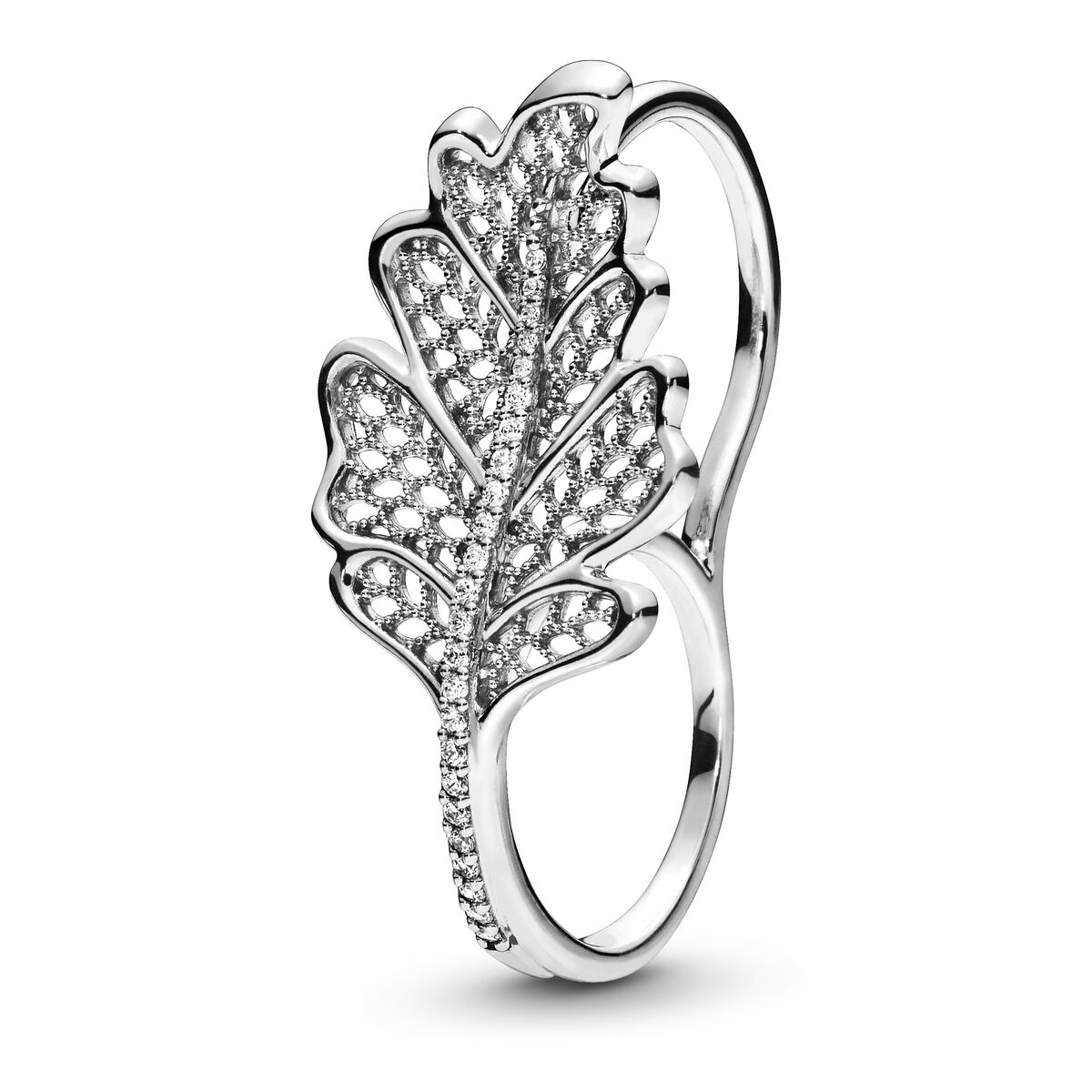 Описание Серебряное кольцо женское с цирконием Листик дуба Pandora