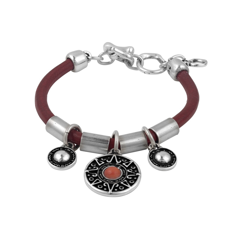 Кожаный браслет с серебряными вставками Ciclon Chiapas