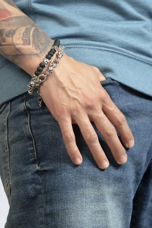Серебряный браслет на руку из бусин Ciclon Calavera