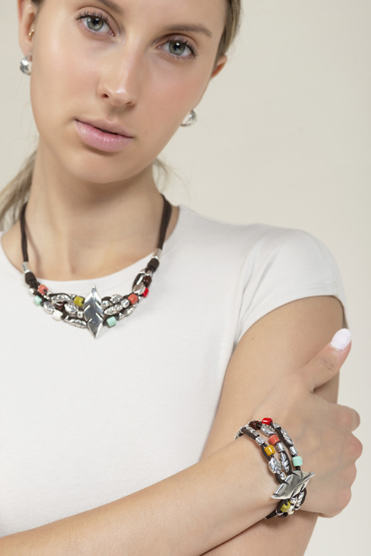 Описание Кожаный браслет с серебряными вставками Ciclon Alma