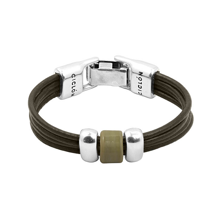 Описание Кожаный браслет мужской с серебряными вставками Ciclon Gael