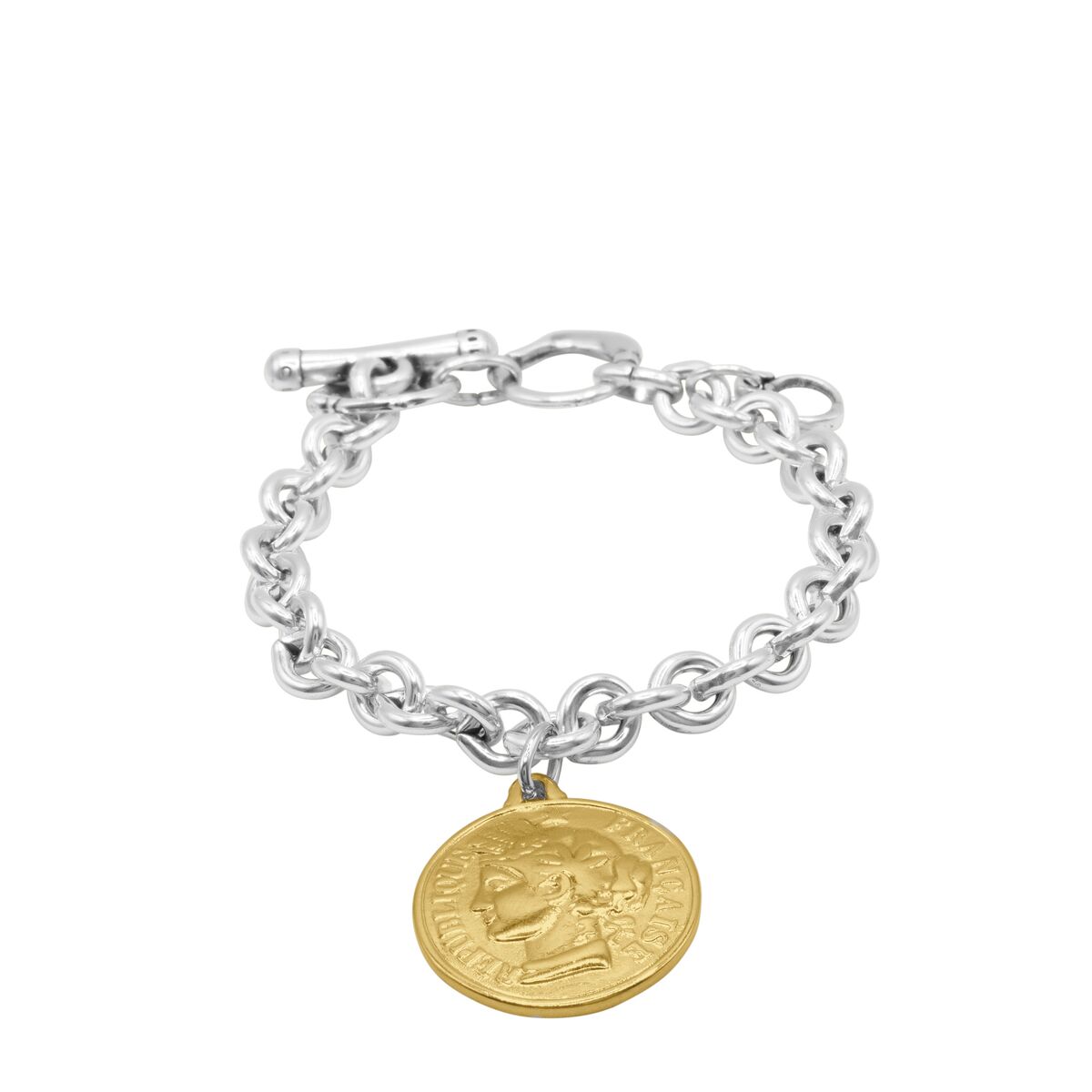 Серебряный браслет женский с золотой подвеской Ciclon France