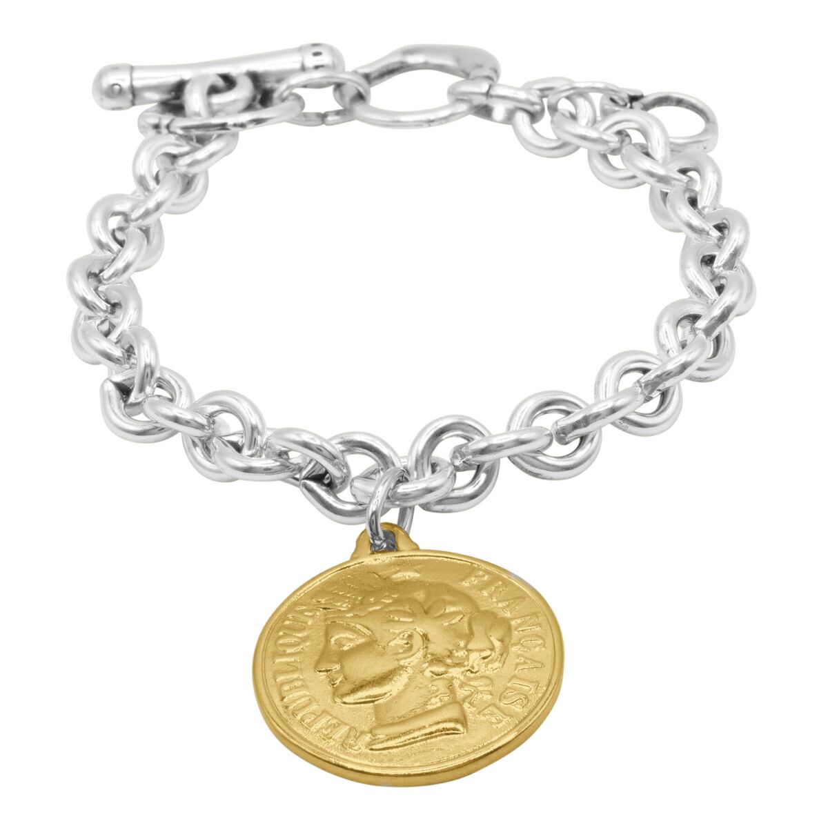 Серебряный браслет женский с золотой подвеской Ciclon Francais