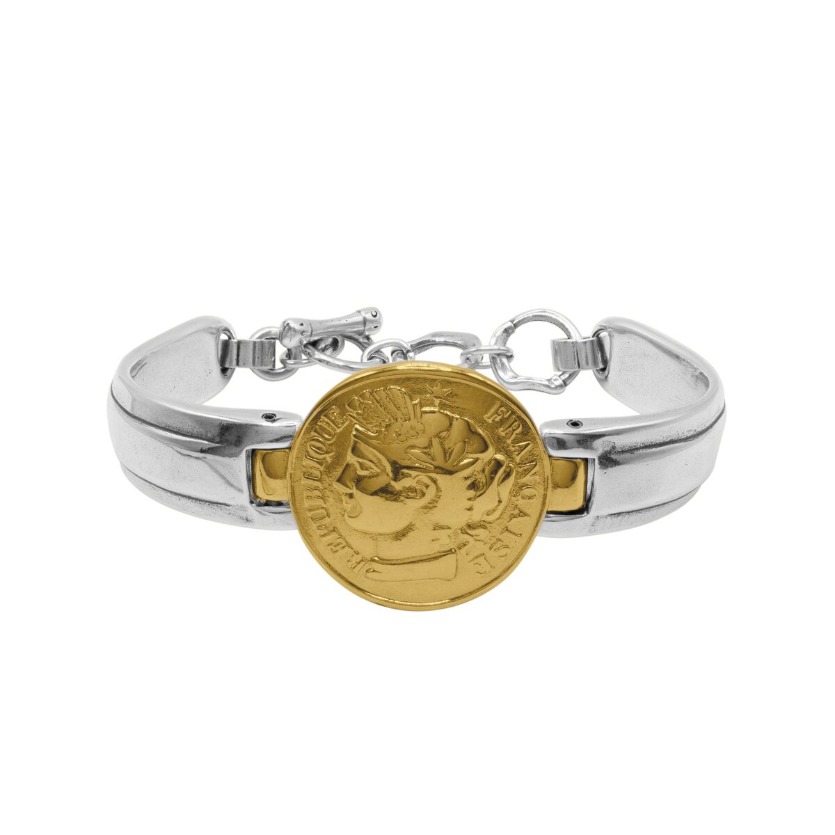 Серебряный браслет женский с золотой подвеской Ciclon France