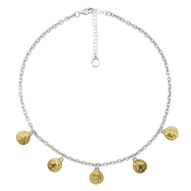 Особенности Серебряное колье женское с золотыми подвесками Ciclon France