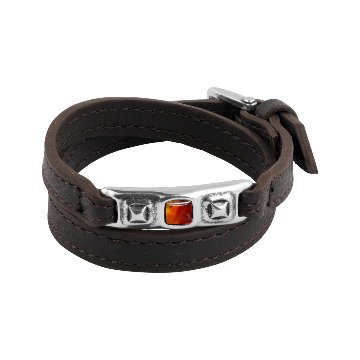 Кожаный браслет женский с серебром и муранским стеклом Ciclon Сhik