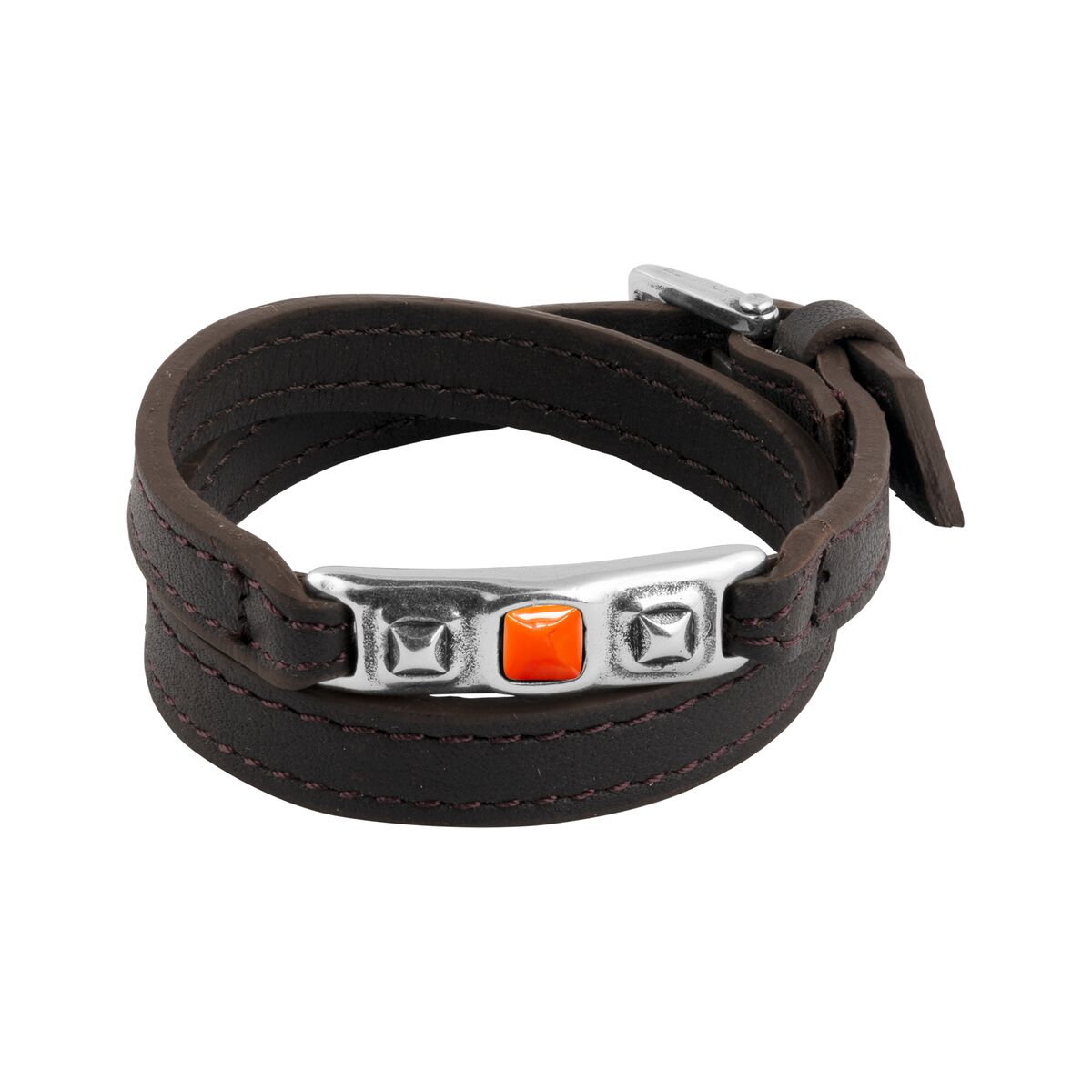 Кожаный браслет с серебром ручной работы. Сделано в Мадриде.