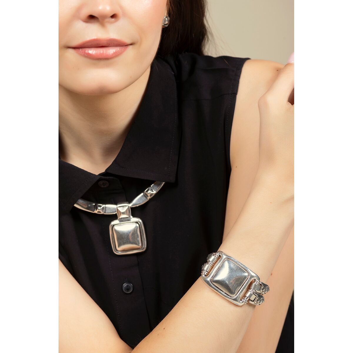 Оригинальный браслет коллекции Kubik с серебряным покрытием украшен большим квадратным узором из муранского стекла.