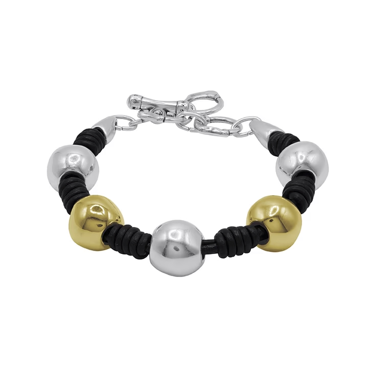 Кожаный браслет женский с золотом и серебром Ciclon Spheric