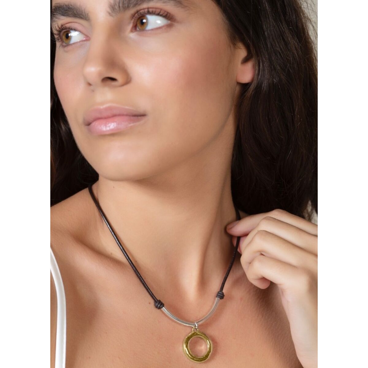 Кожаное колье с золотой подвеской Ciclon Aurea