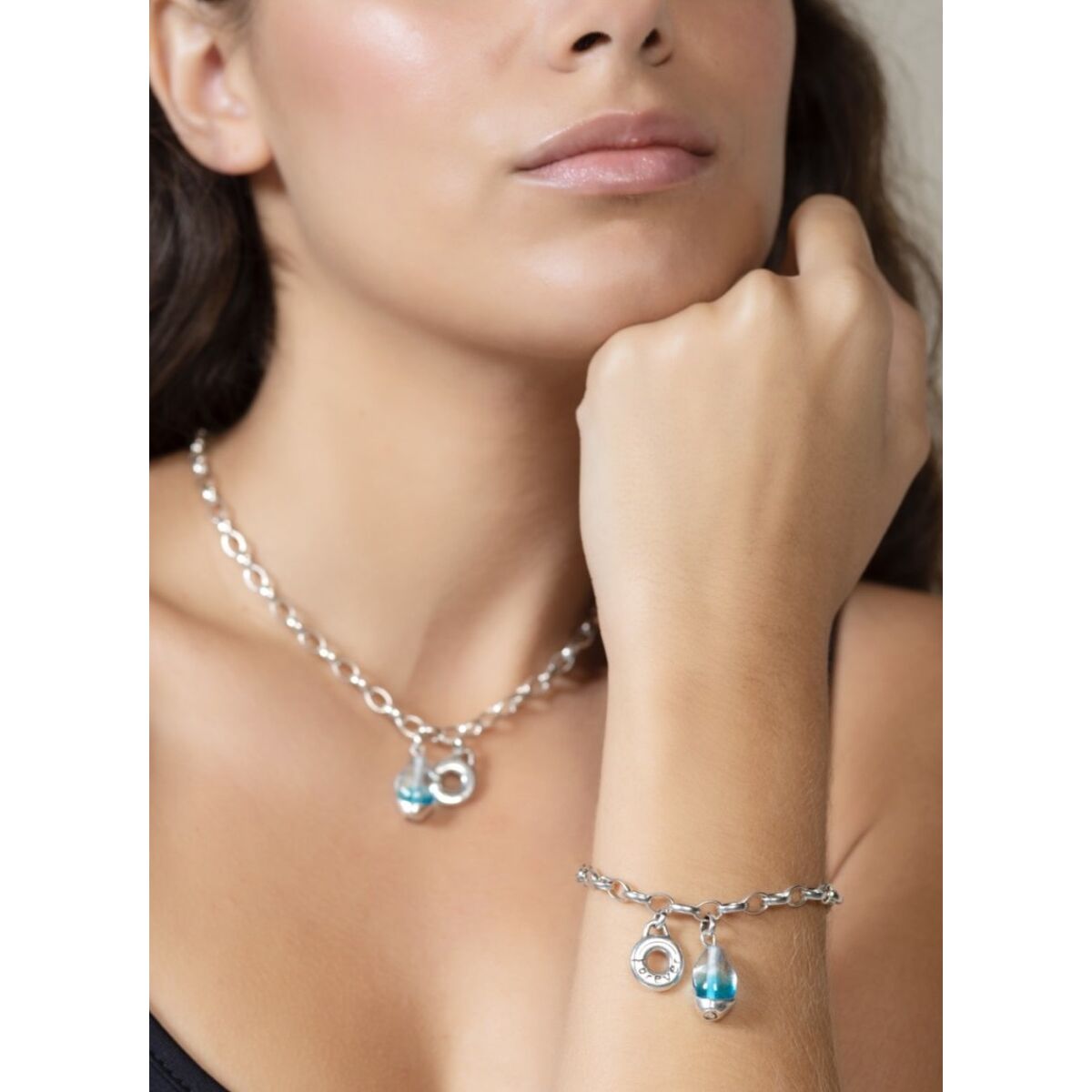Описание Серебряный браслет с подвеской и муранским стеклом Ciclon Liquid