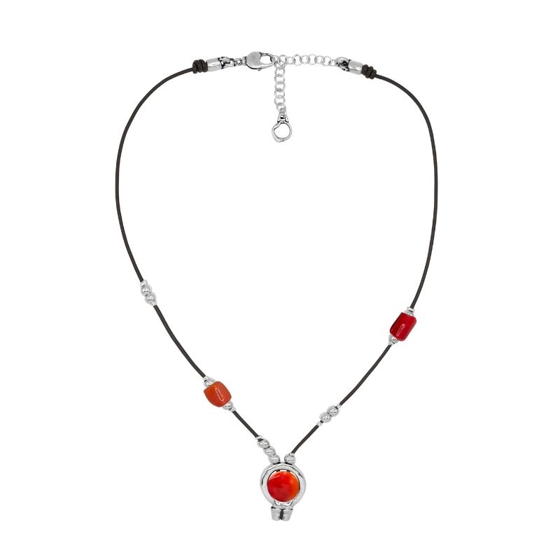 Описание Кожаное колье с муранским стеклом Ciclon Aurea