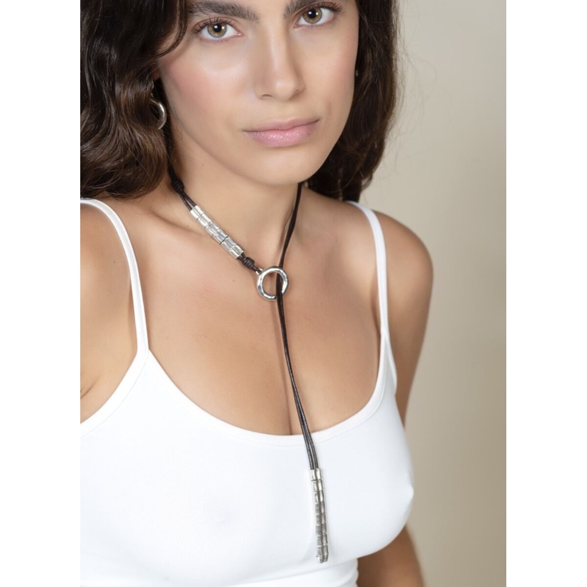Описание Серебряное колье с натуральной кожей Ciclon Aurea