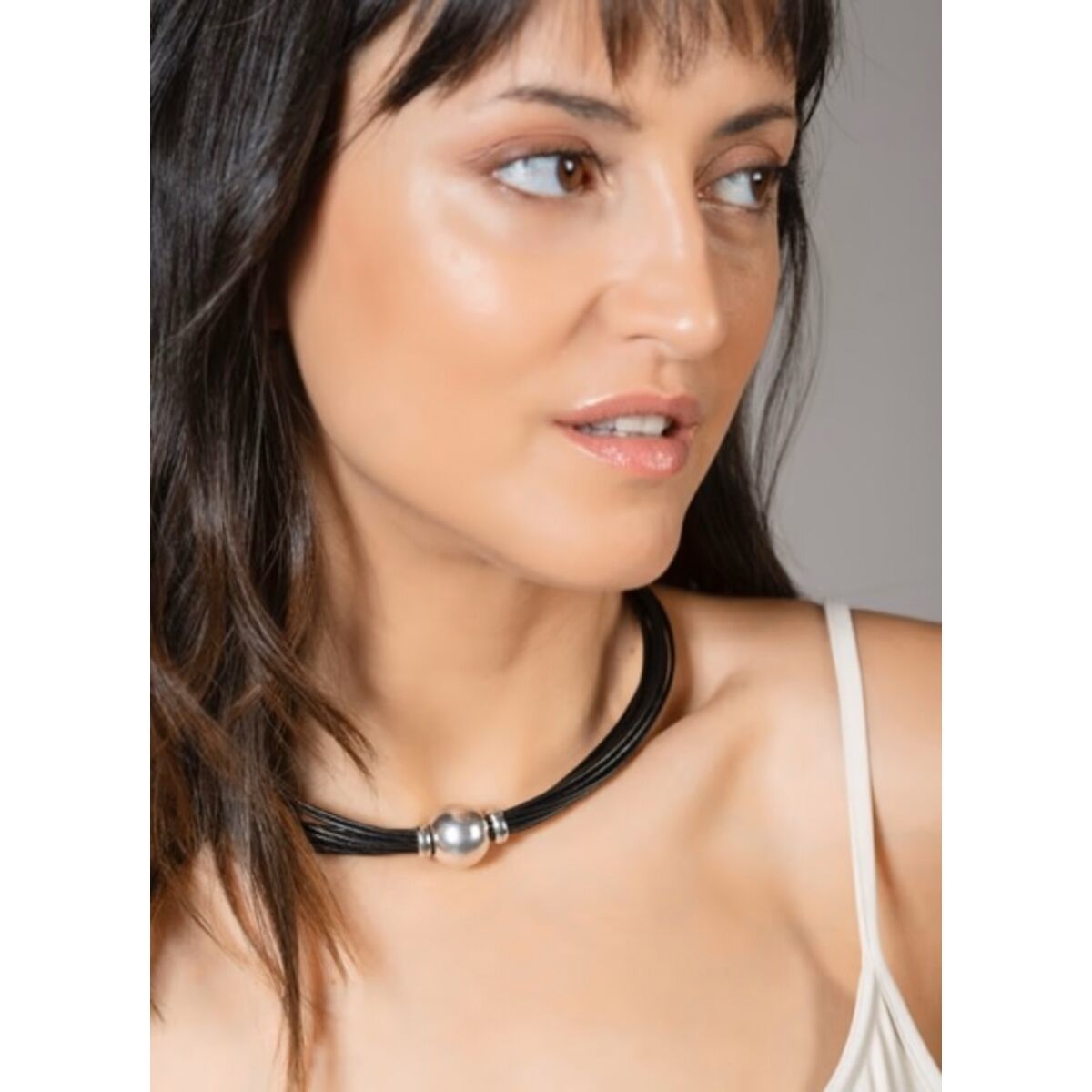 Описание Кожаное колье женское с серебром Ciclon Spheric