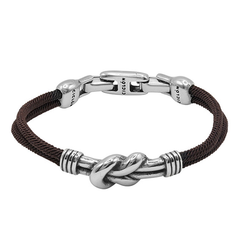 Описание Кожаный браслет с серебряными вставками Ciclon Rizo