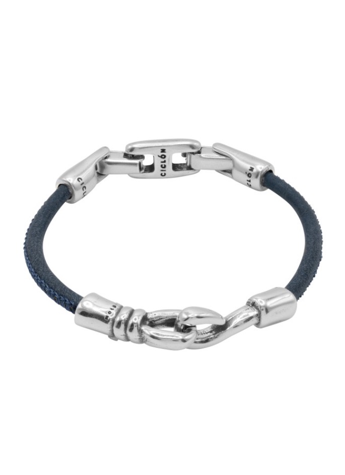 Кожаный браслет с серебряными вставками Ciclon Man