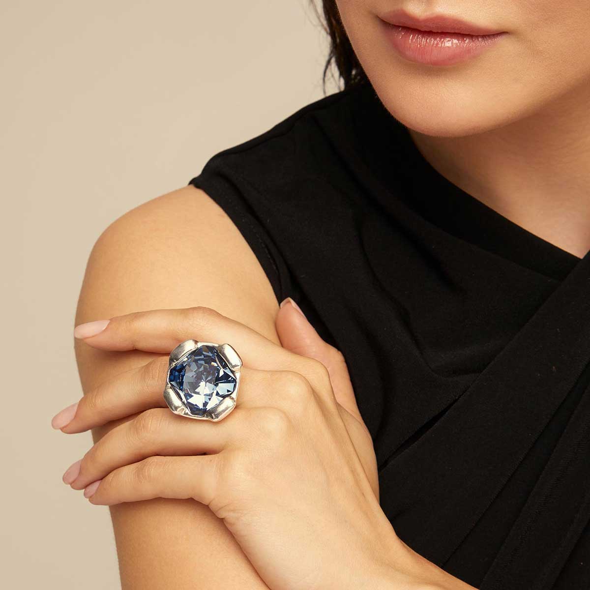 Произведите неизгладимое впечатление благодаря кольцу Charisma с серебром. Крупное украшение из уникального ювелирного сплава с массивным голубым граненым кристаллом похоже на великолепный цветок. От сверкающего камня, подчеркнутого сиянием серебрения, невозможно оторвать взгляд. Украшение ручной работы, достойное настоящей королевы, заиграет еще ярче, если дополнить его браслетом арт. PUL2356AZUMTL, изготовленным в аналогичном эксклюзивном дизайне.