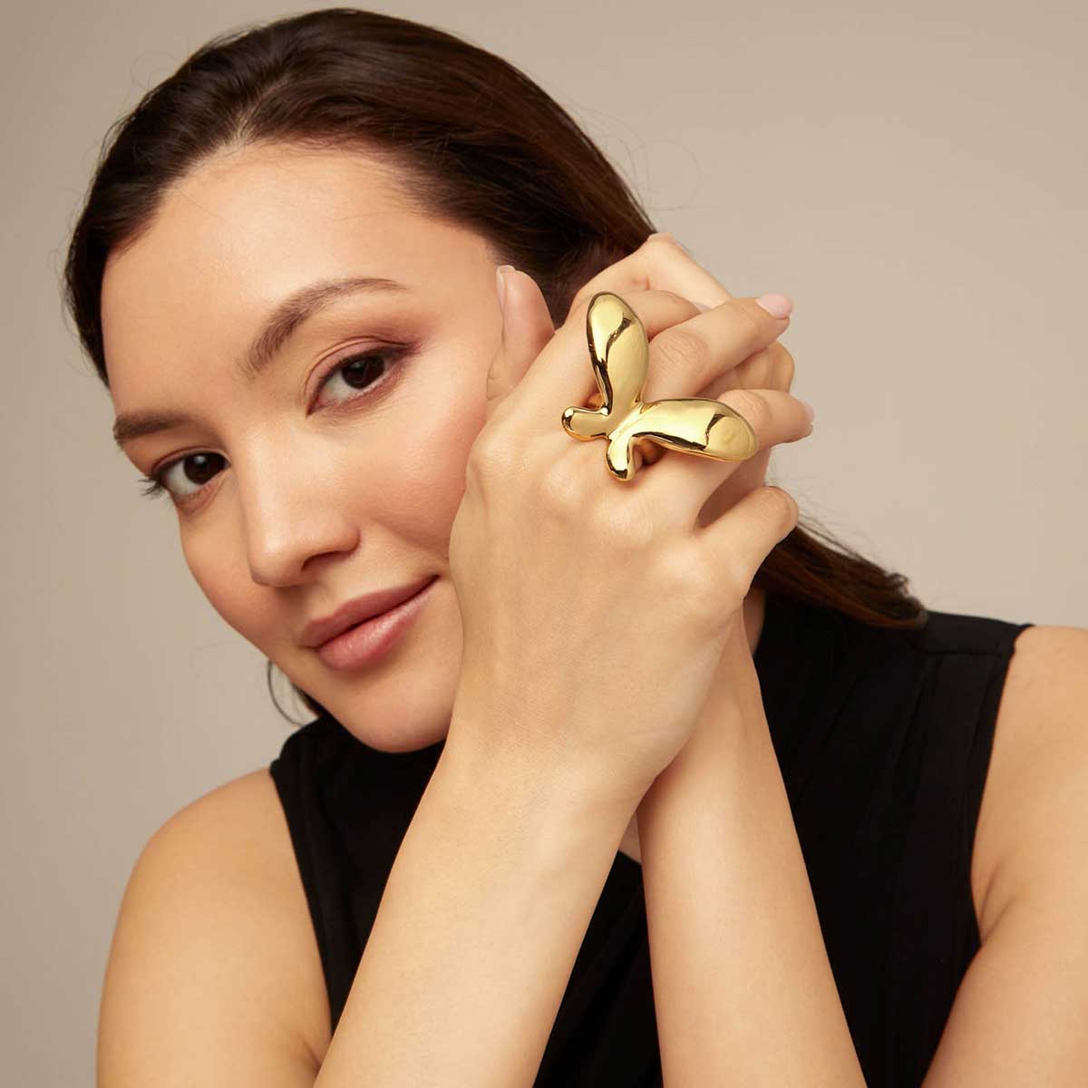 Золотое кольцо женское Бабочка большая UNOde50 Wings
