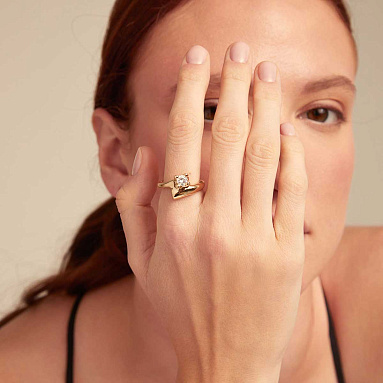 Насладитесь божественной красотой кольца Divine с золотом. Прозрачный кристалл, сверкающий множеством граней, обрамлен необычной оправой, которая подчеркивает и оттеняет красоту камня. Плавные изгибы формы, блеск позолоты уникального сплава и свечение граненного кристалла создают притягивающую взгляд композицию. Это эксклюзивное украшение авторской работы хочется созерцать, приходя в состояние баланса и умиротворенности. Сделайте его своим талисманом, приносящим гармонию.